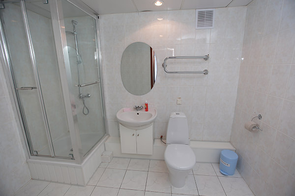3 осн. места. 1 доп. место. Мебель: вешалка, зеркало, кровати односпальные, прикроватные тумбочки, стол, стулья, шкаф. Оборудование: телевизор, холодильник, электрочайник. Санузел: с душем, туалетные принадлежности. Сервис: смена полотенец, смена постельного белья, уборка номера.